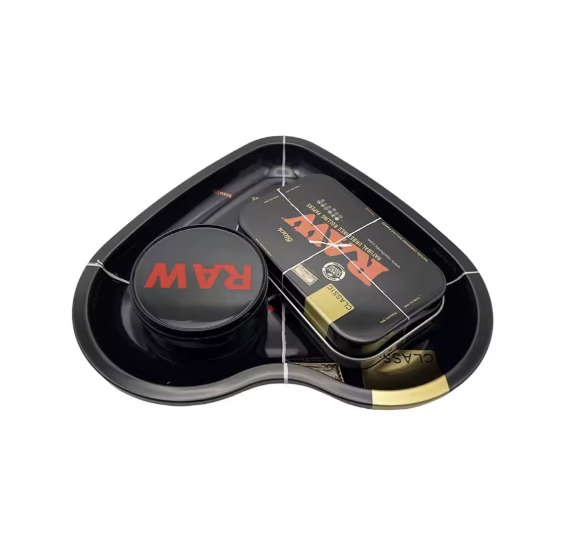 Efficiently grind and roll with our Raw heart shaped rolling tray, complete with a grinder and tin. Crafted for durability and convenience, this tray offers a smooth and precise rolling experience. Increase your productivity and upgrade your smoking essentials with this unique and stylish tray.